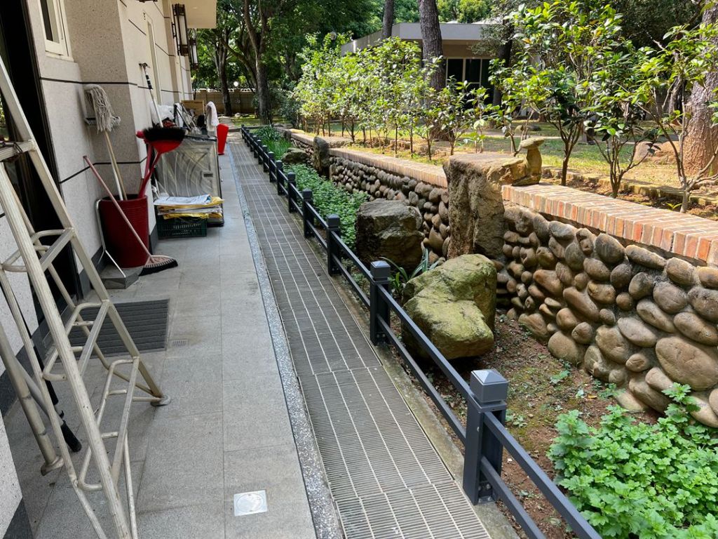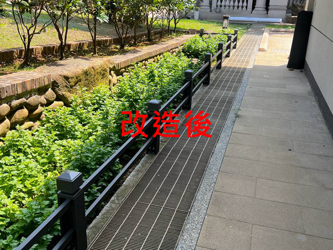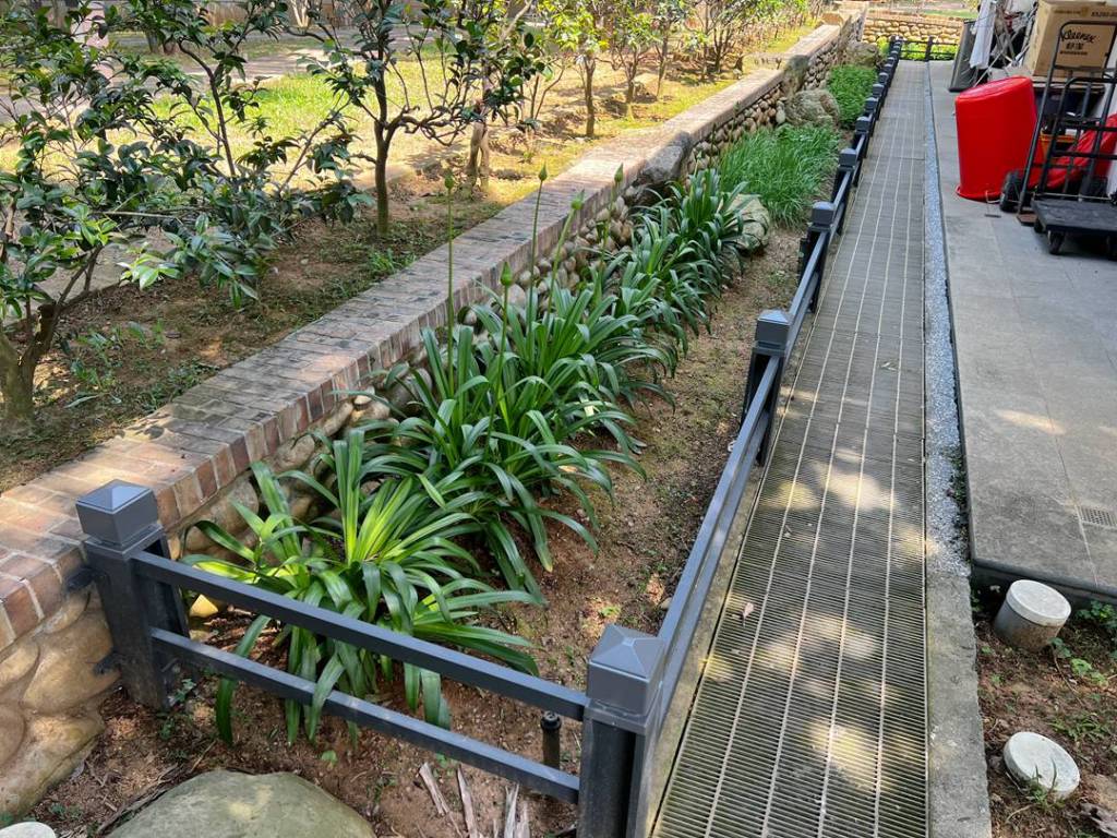 常見欄杆材質為鋁合金/不銹鋼/鍛造花,此次業主選擇不銹鋼烤漆欄杆。