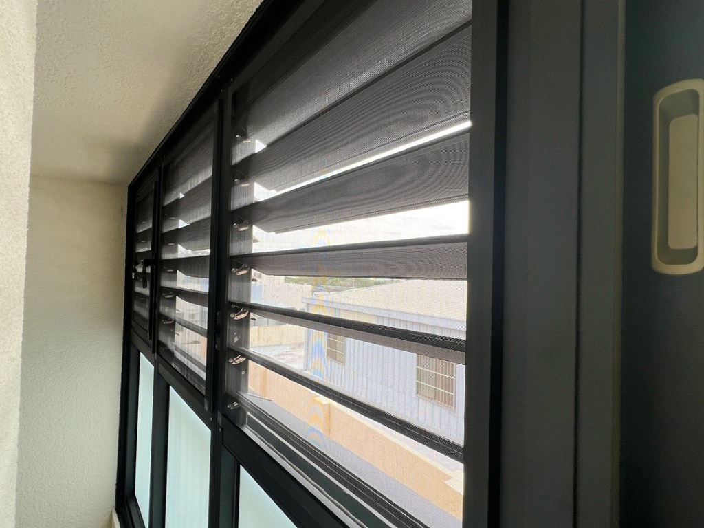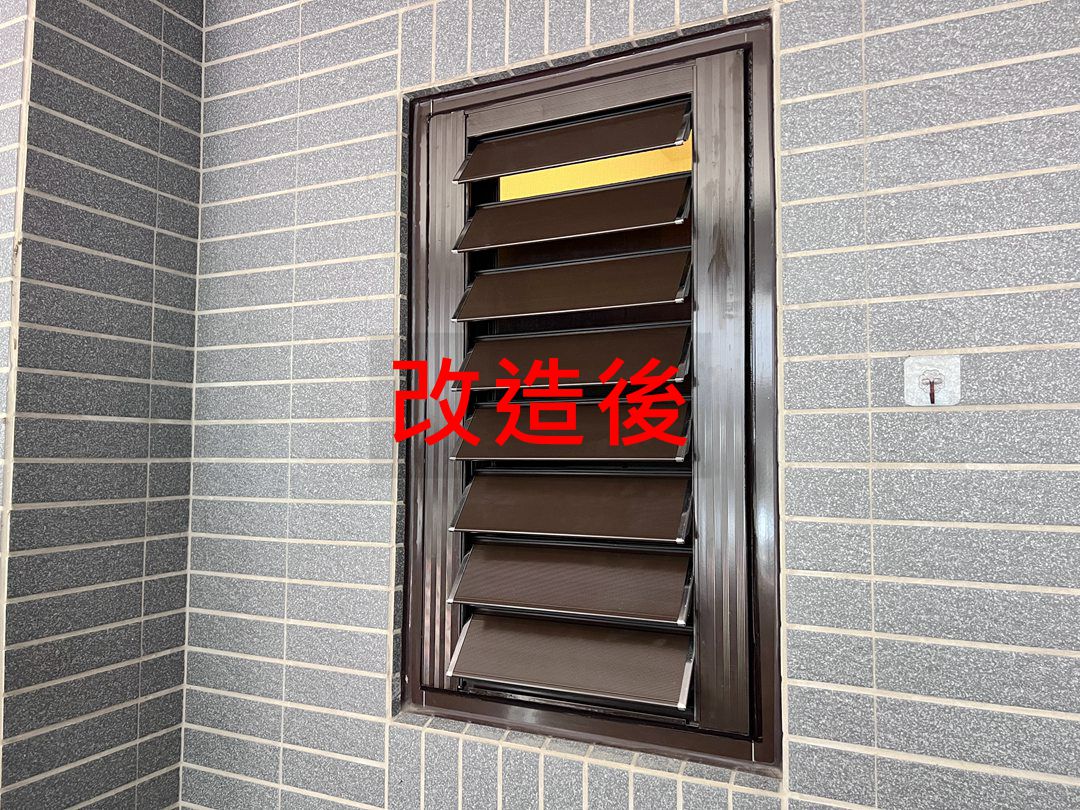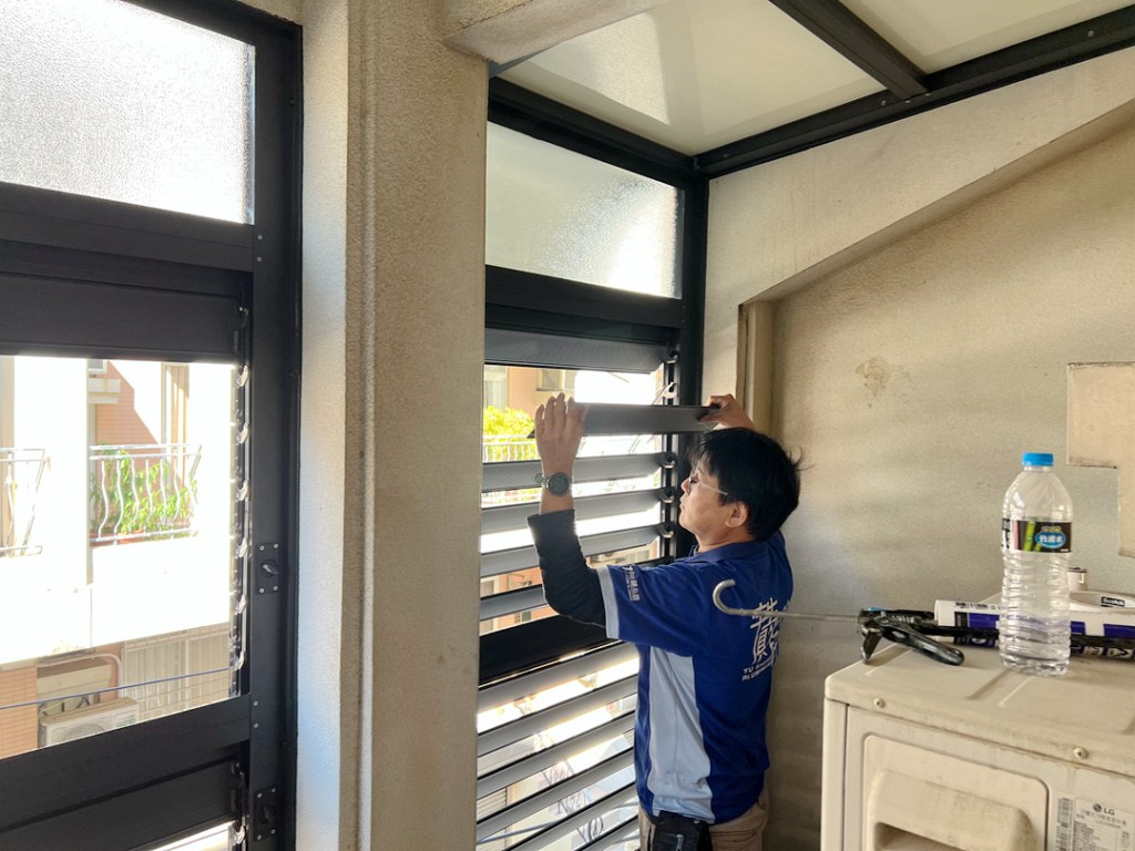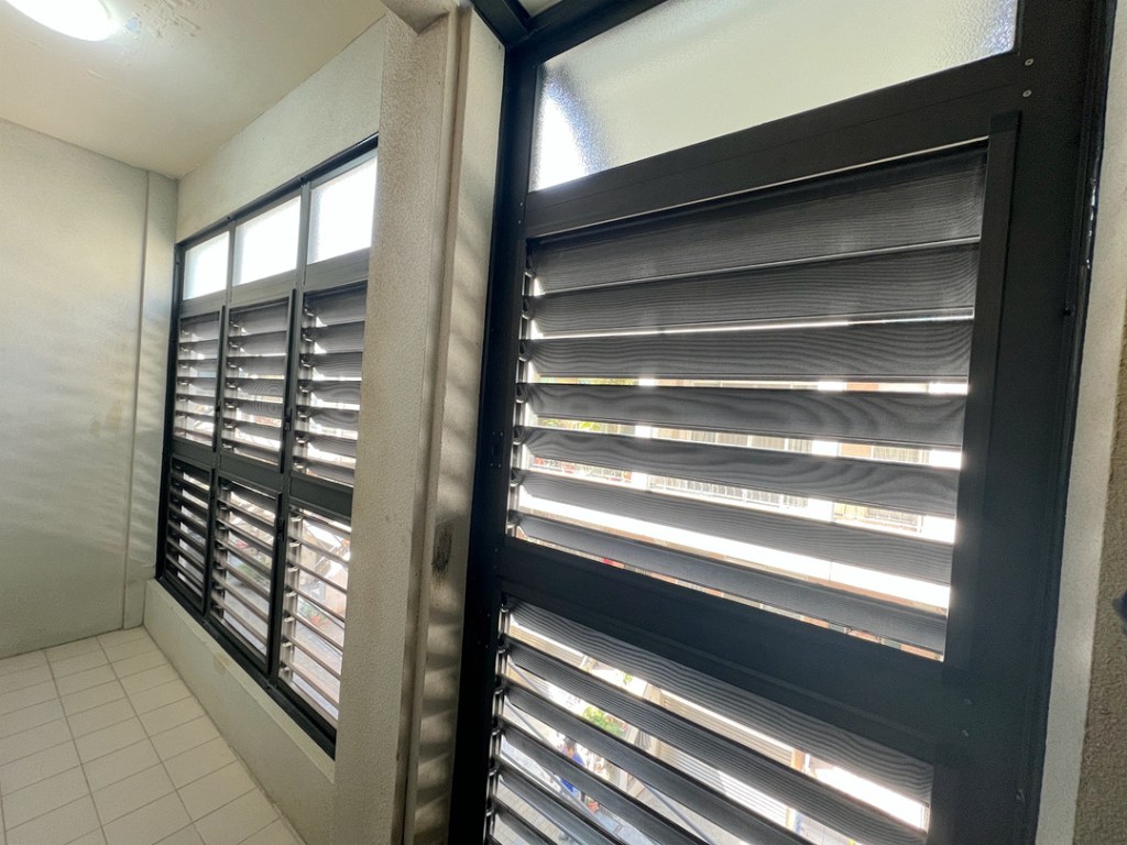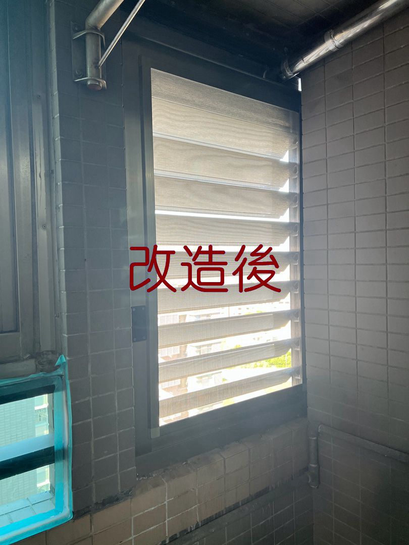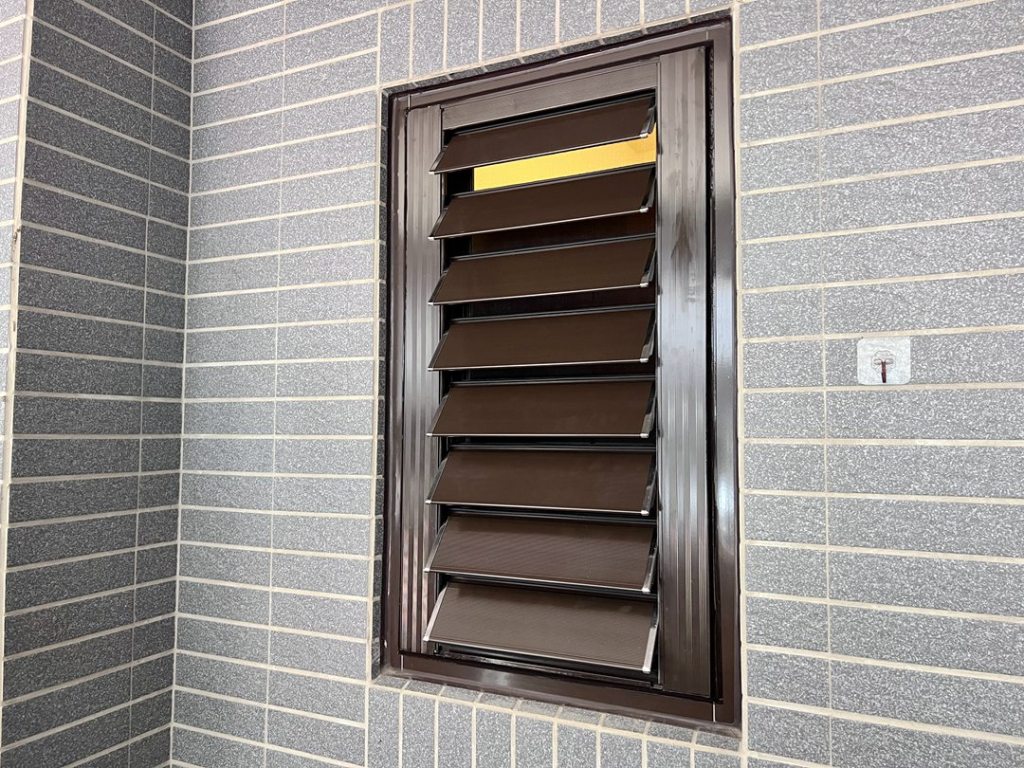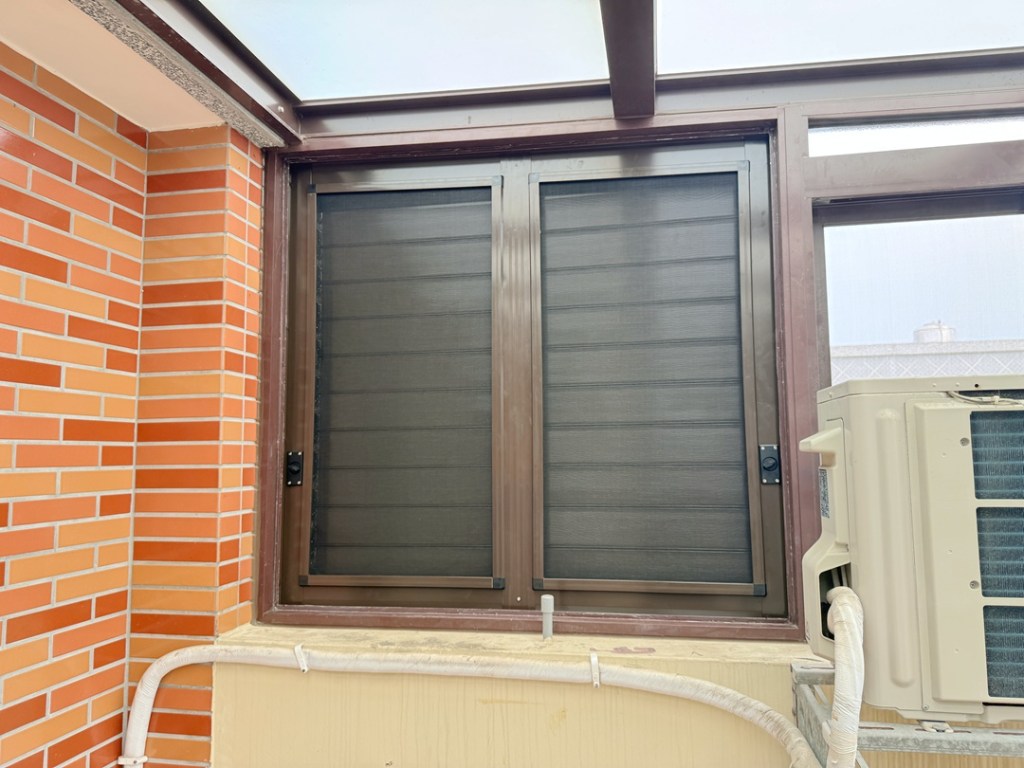 此次業主選用鋁百葉窗加紗窗,鐵灰砂色系極簡風格,當天完成。