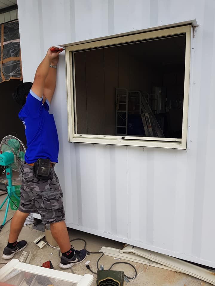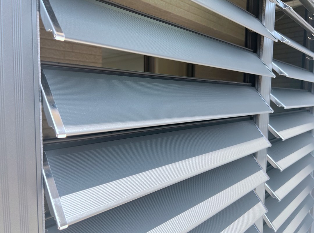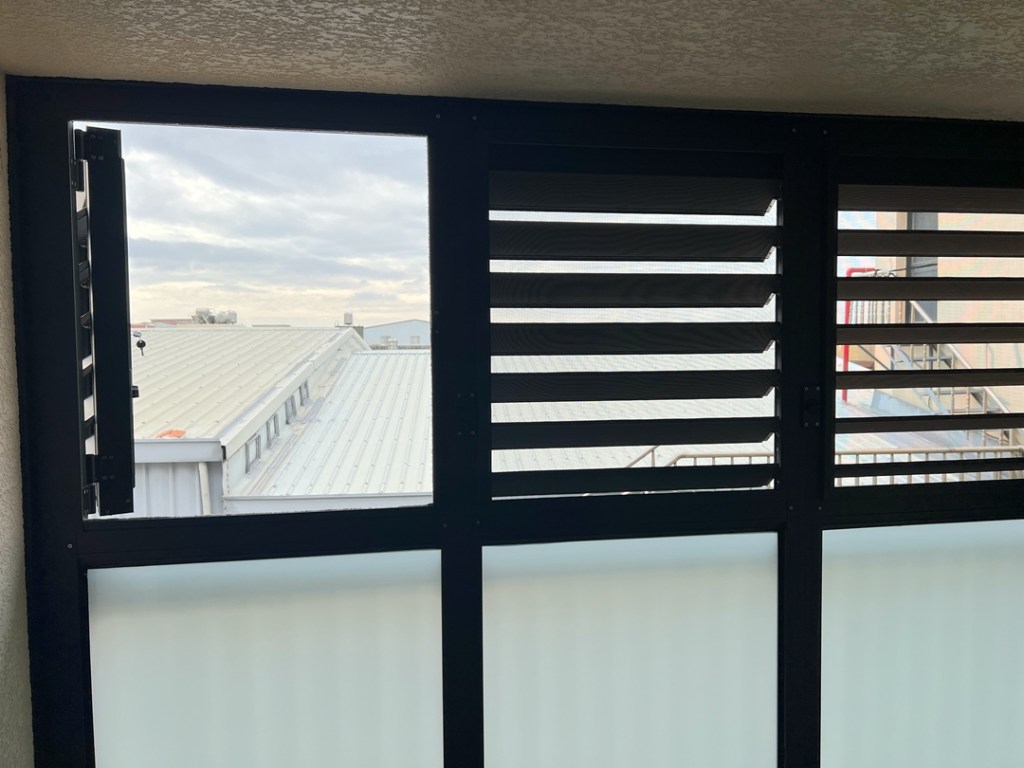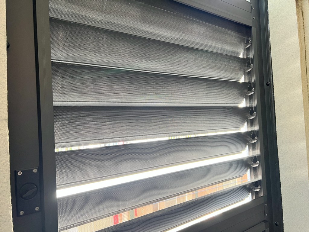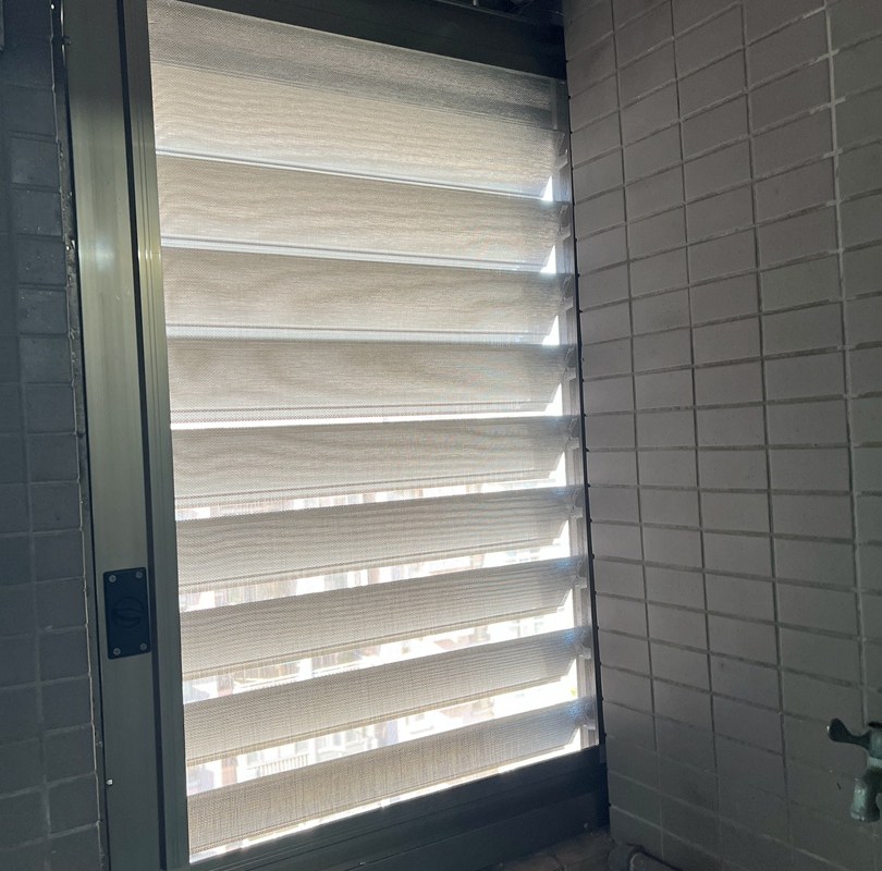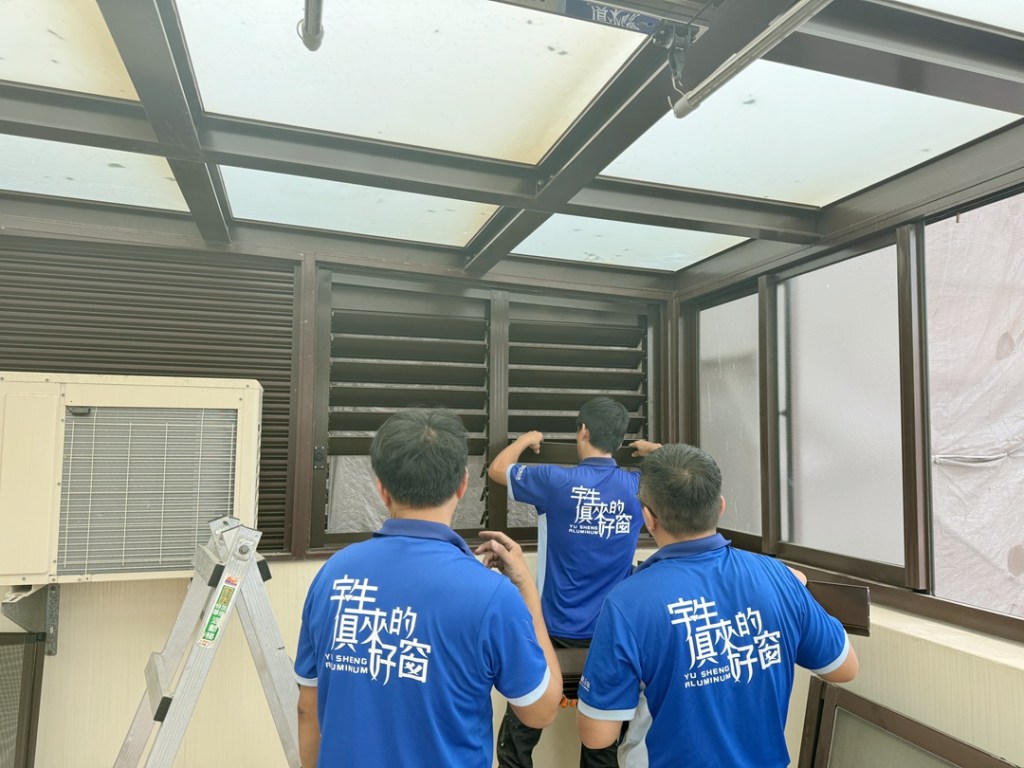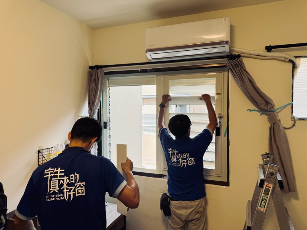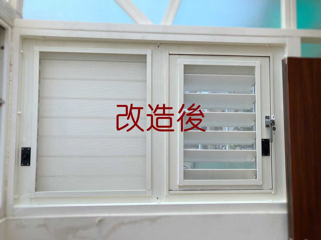 此次業主選用鋁百葉窗加紗窗,鐵灰砂色系極簡風格,當天完成。