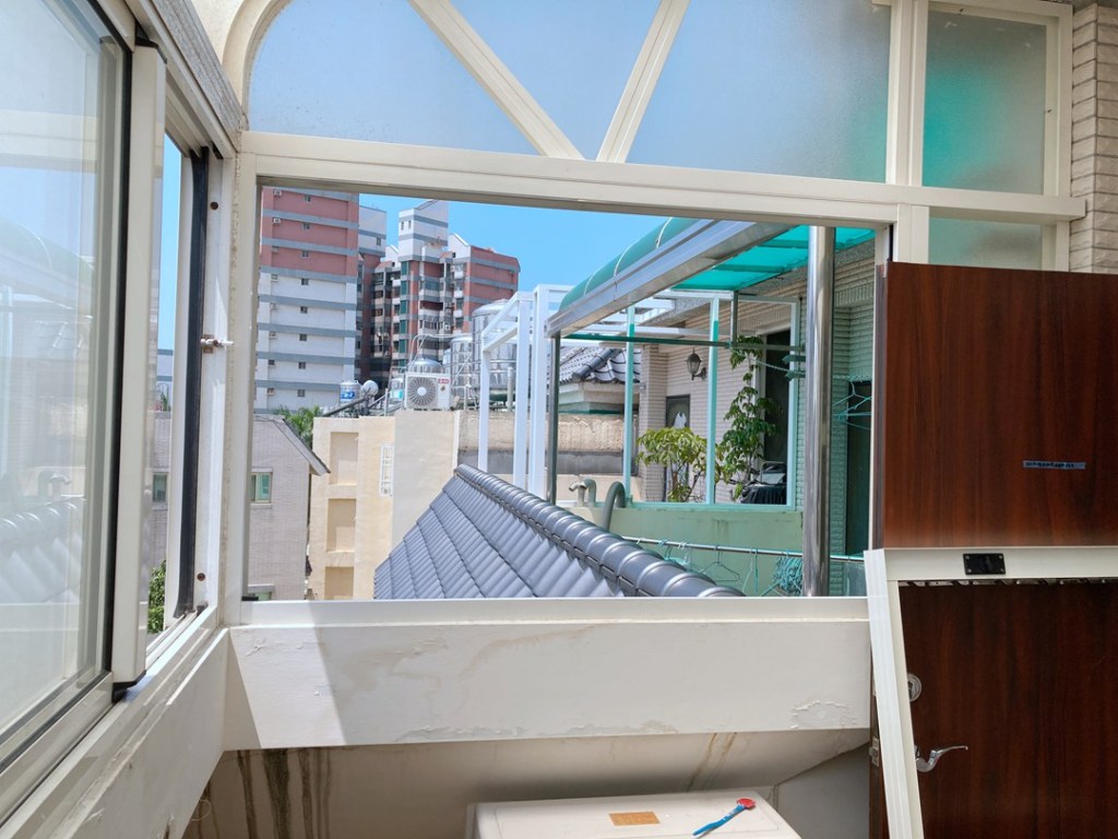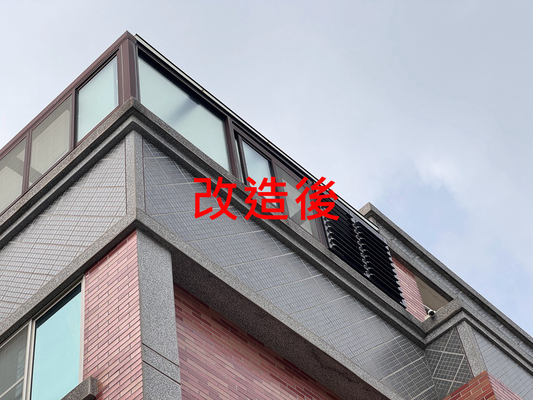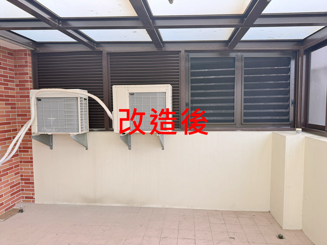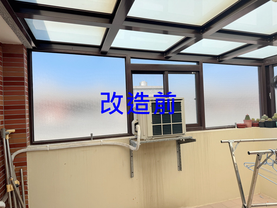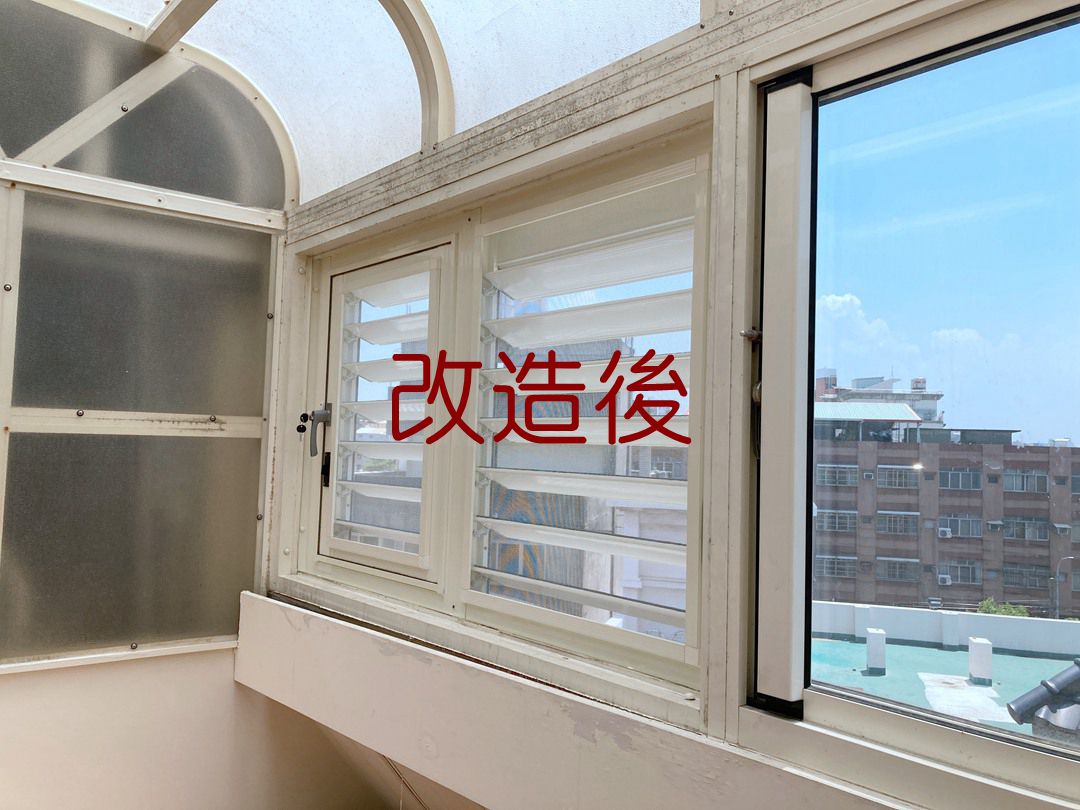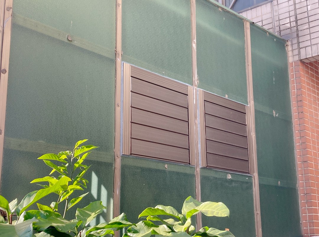 解決方案:建議將用白鐵板封住的窗改活動鋁合金百葉窗。鋁百葉窗可調整葉片角度通風遮陽,平日開啟通風不怕下雨,全關變身室內空間。