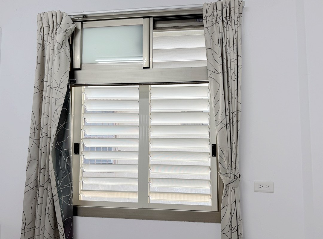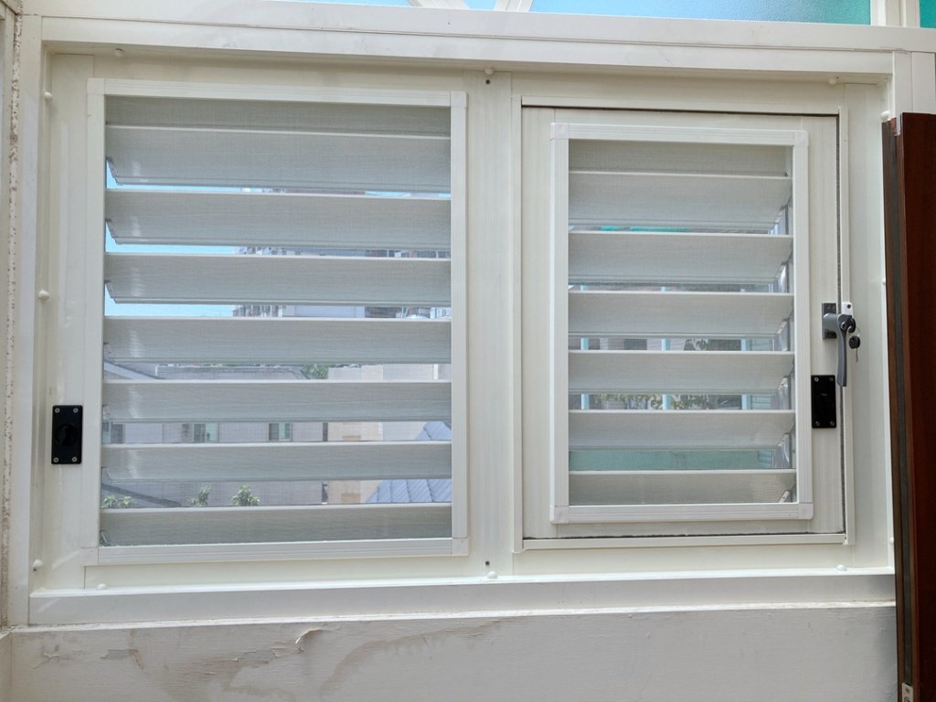 鋁百葉不易入侵可調節進光量,具備防盜及防曬效果。百葉亦可加裝紗窗,滿足安全與防蚊需求。