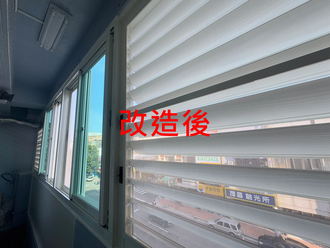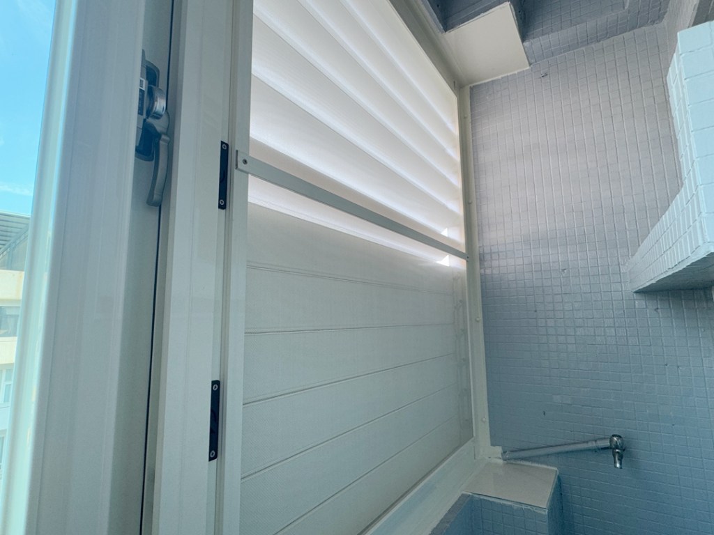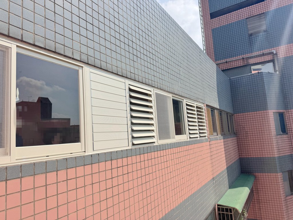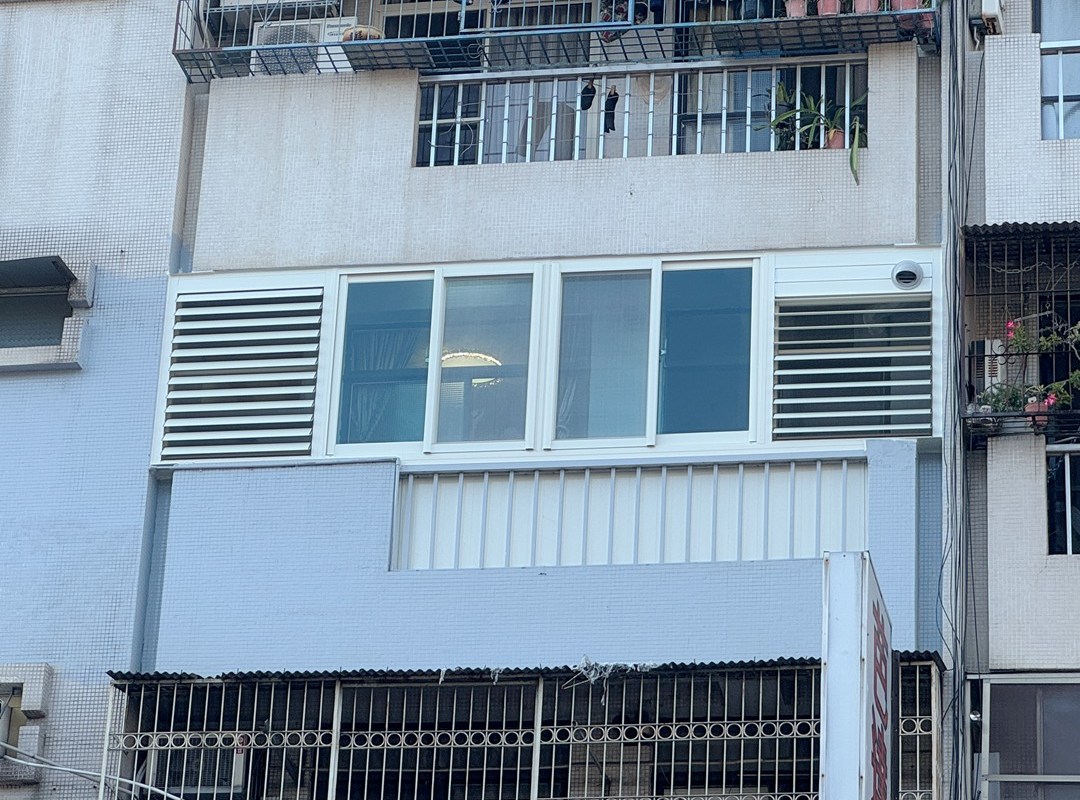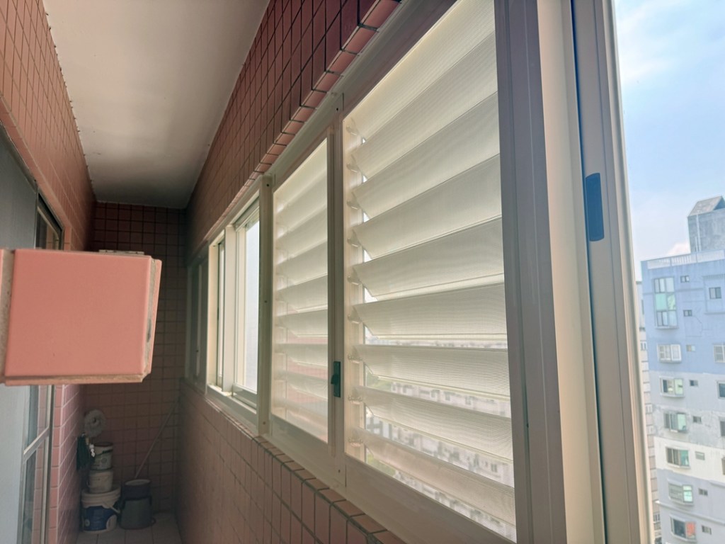 解決方案:現場和業主討論後,主要需求是保持陽台乾淨,也需要防盜和通風,建議業主陽台安裝氣密窗+鋁百葉窗。