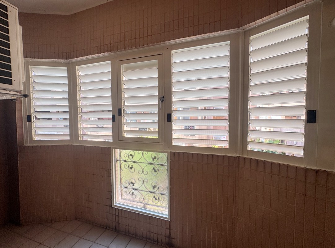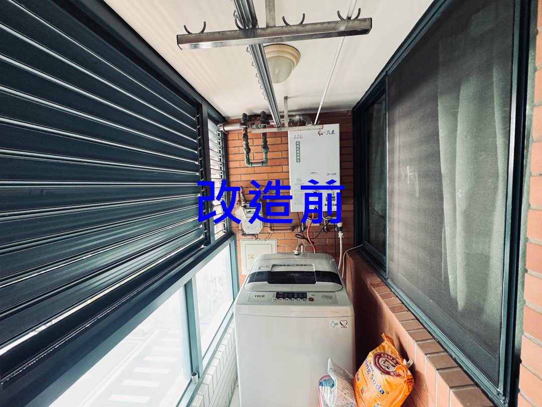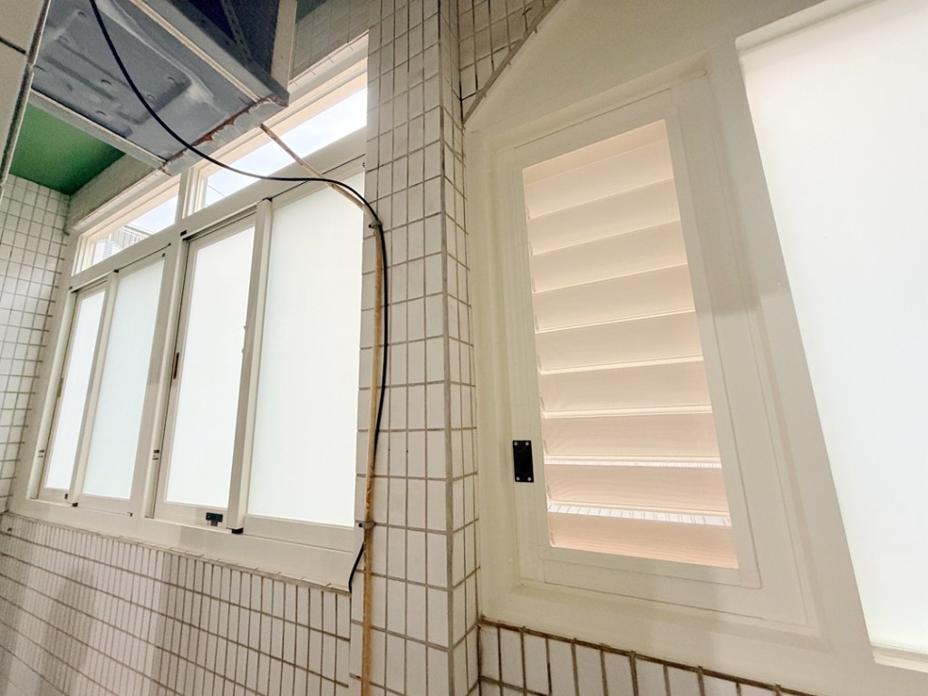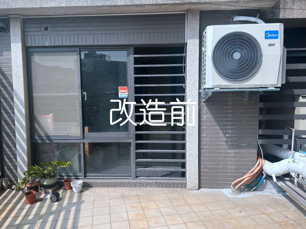 解決方案:現場和業主討論後,主要需求是保持陽台乾淨,也需要防盜和通風,建議業主陽台安裝氣密窗+鋁百葉窗。
