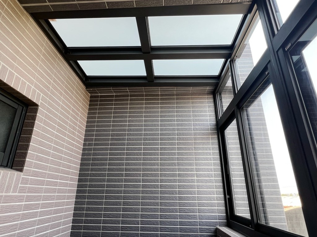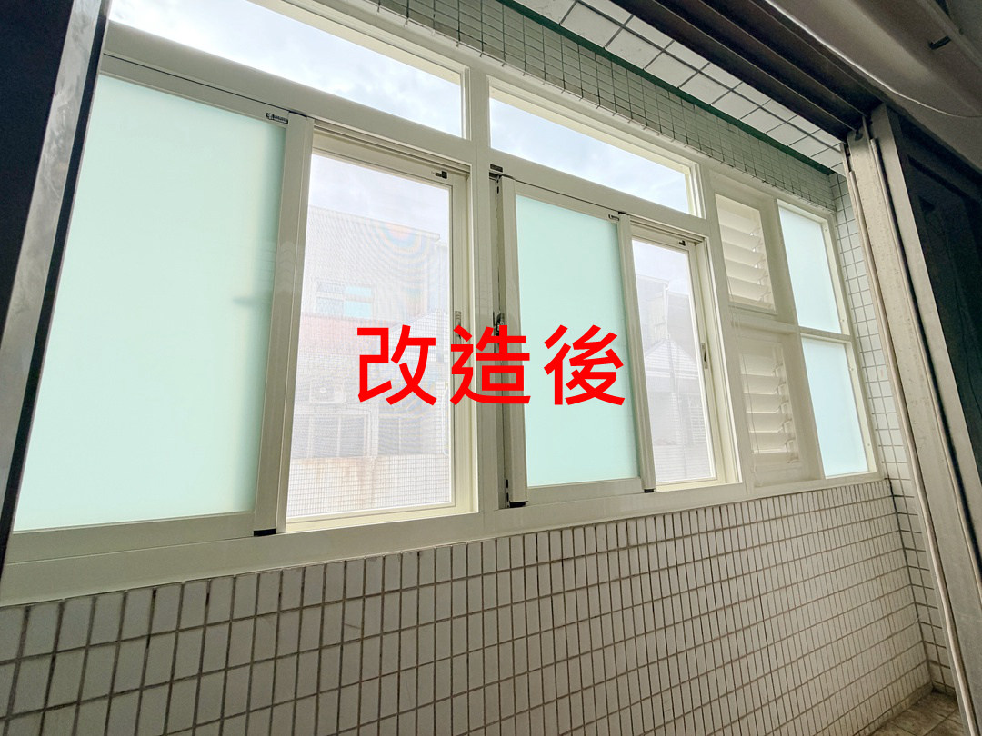 業主選擇乳白色鋁框和白膜膠合安全玻璃,可達到業主想要的隱私和採光需求。膠合玻璃加強隔音效果,陽台轉身變成明亮防雨的室內空間。