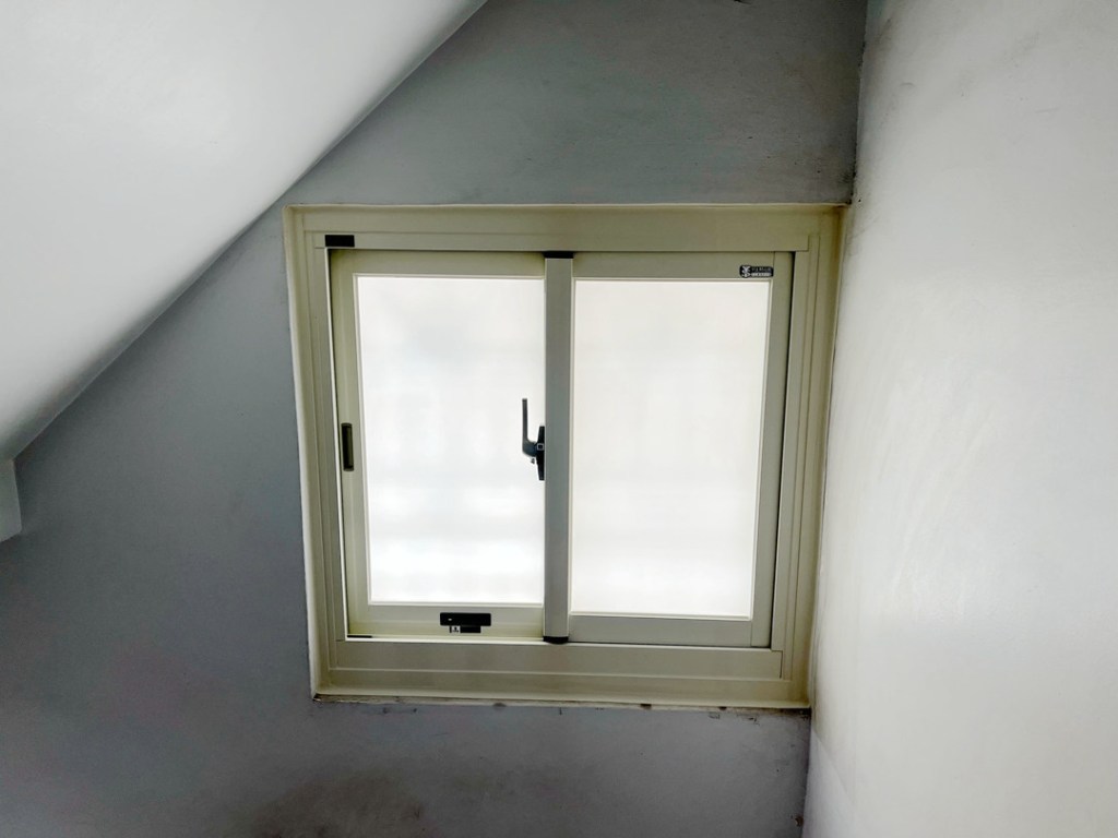 窗框選用乳白色,搭配白膜膠合安全玻璃。業主希望拆除鐵窗,能夠保持明亮採光和隱私高的要求,整體設計簡單大方。