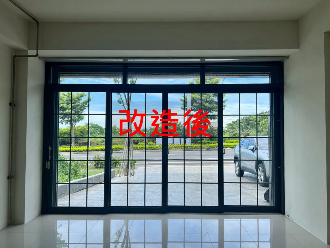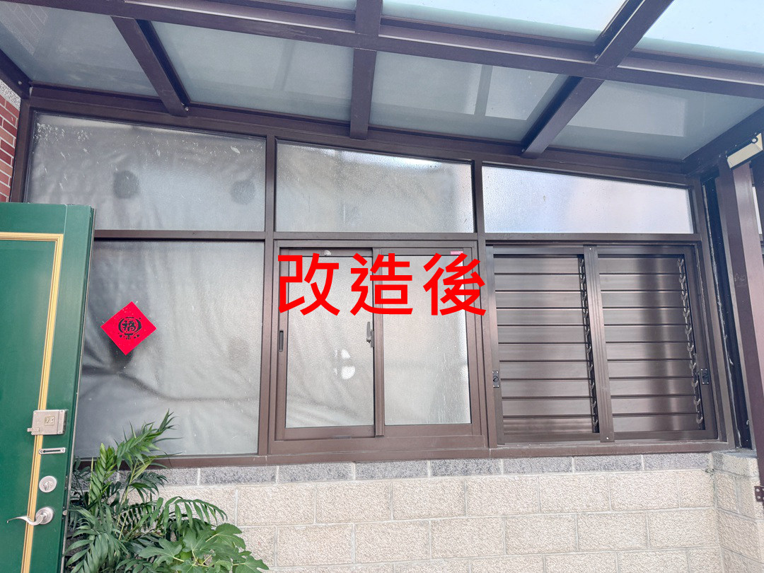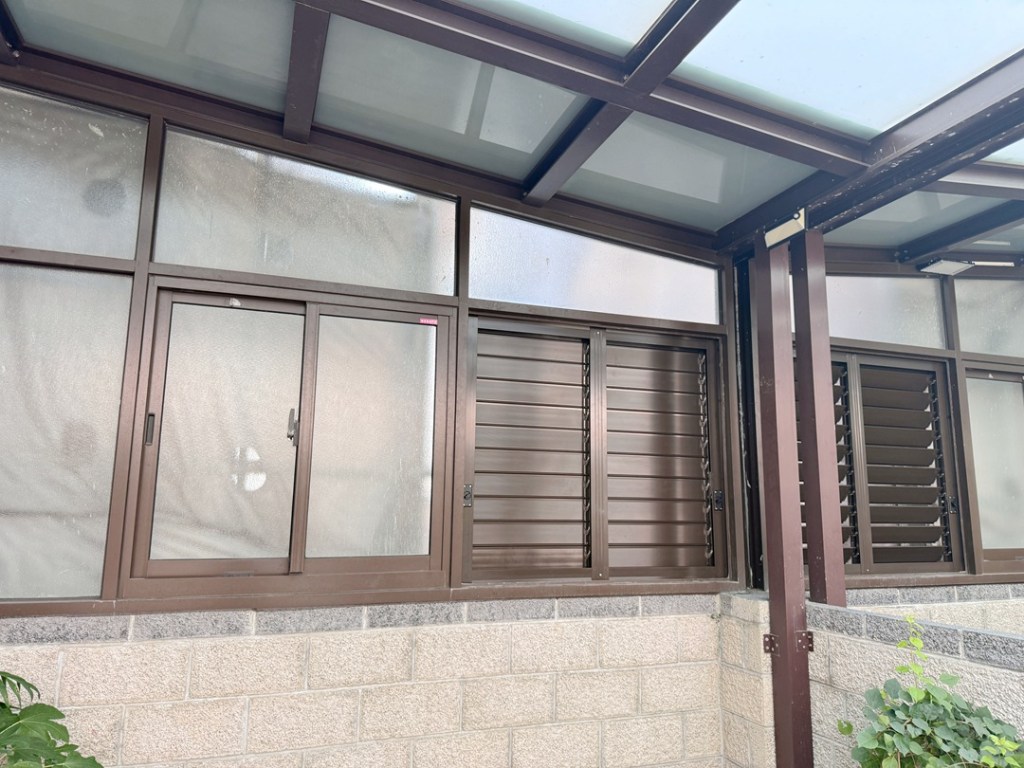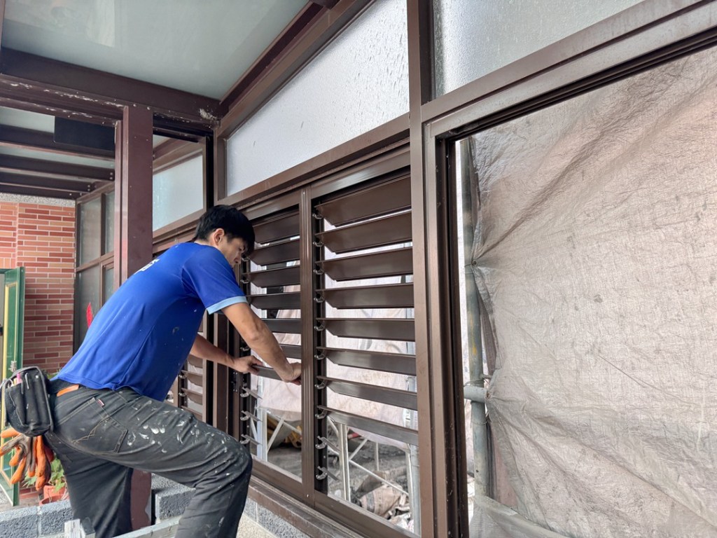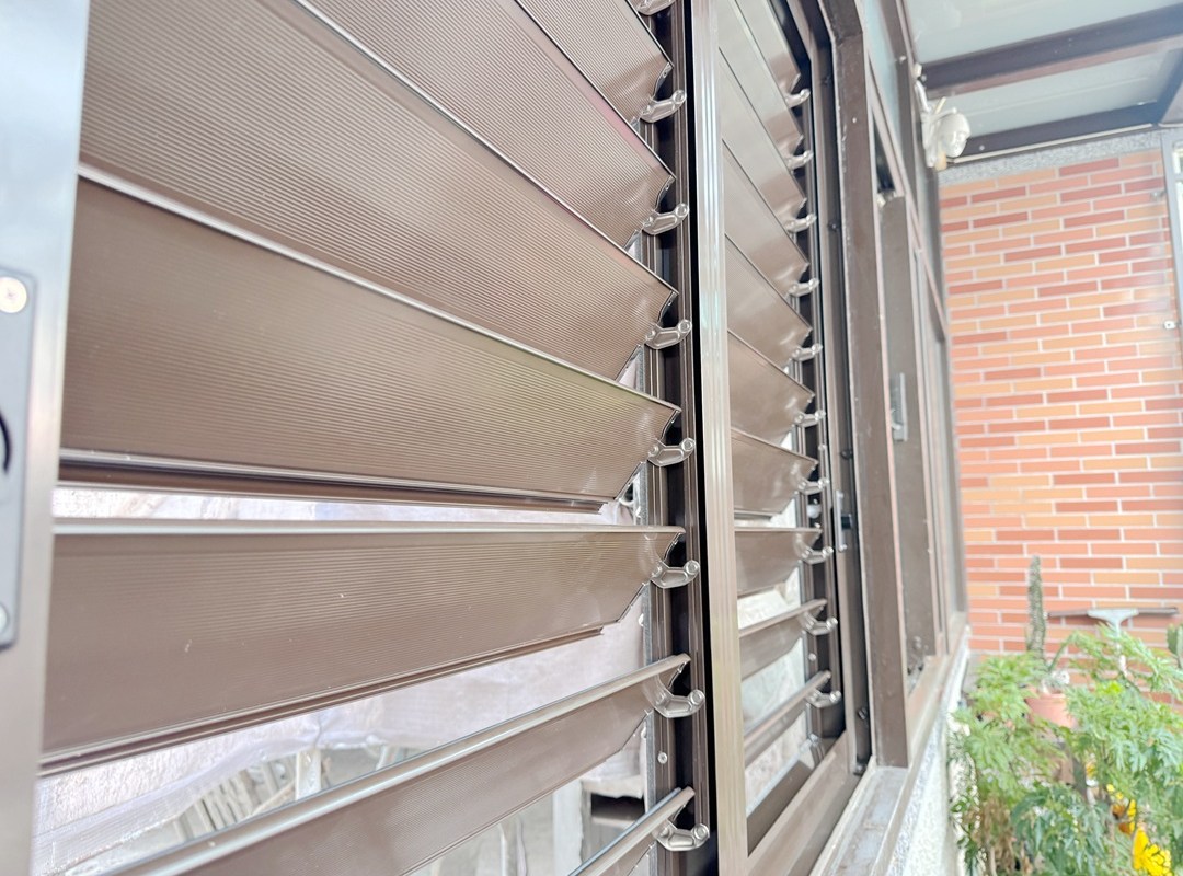 此次業主選用鋁百葉窗加紗窗,鐵灰砂色系極簡風格,當天完成。