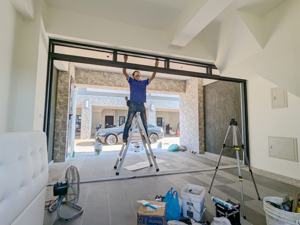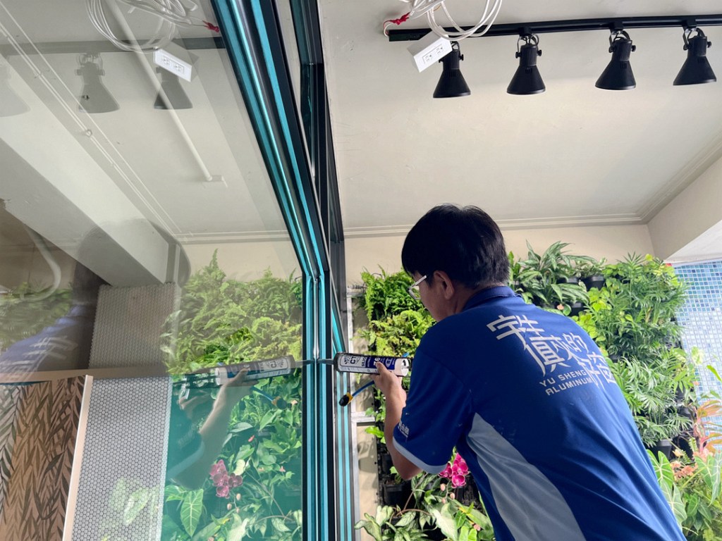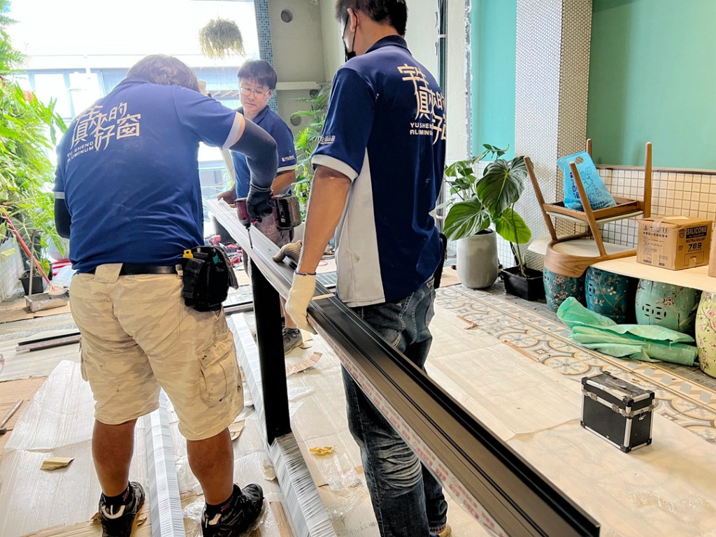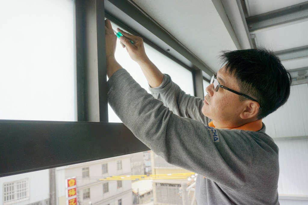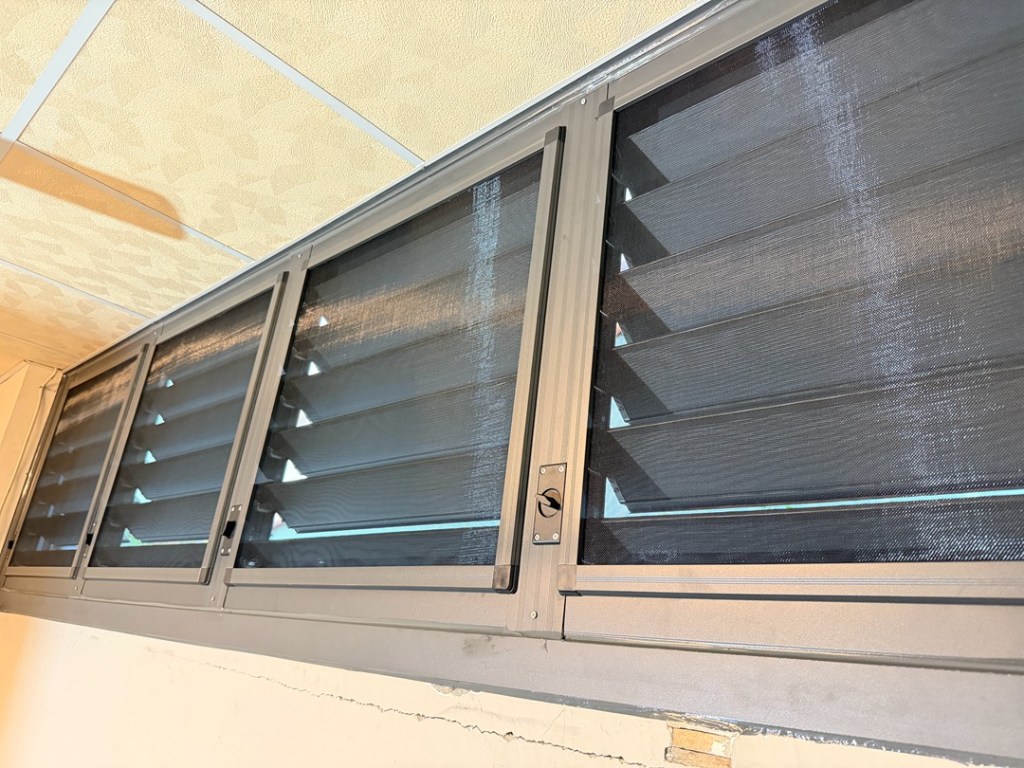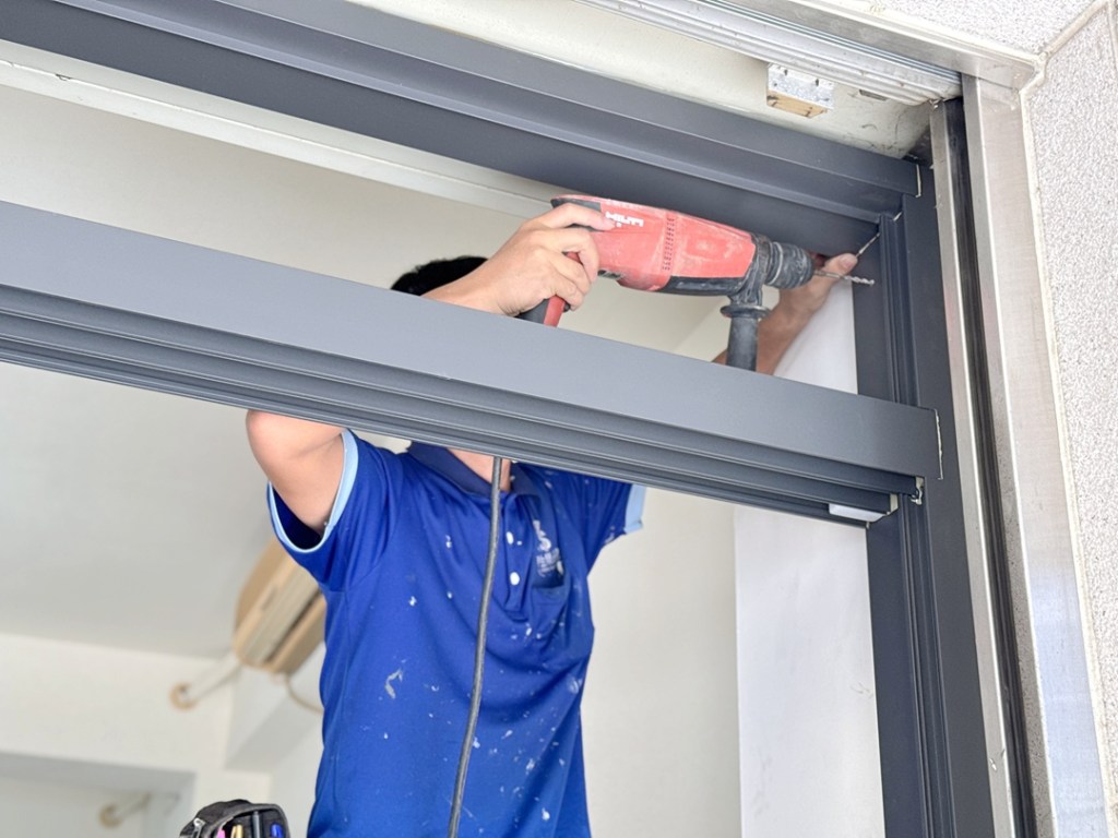 此次業主選用鋁百葉窗加紗窗,鐵灰砂色系極簡風格,當天完成。