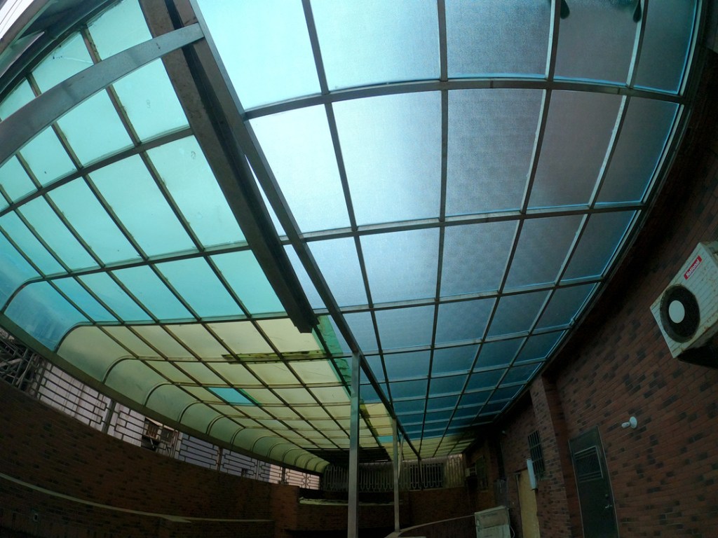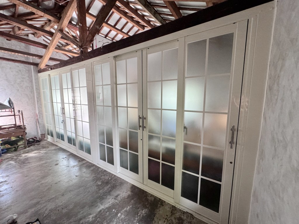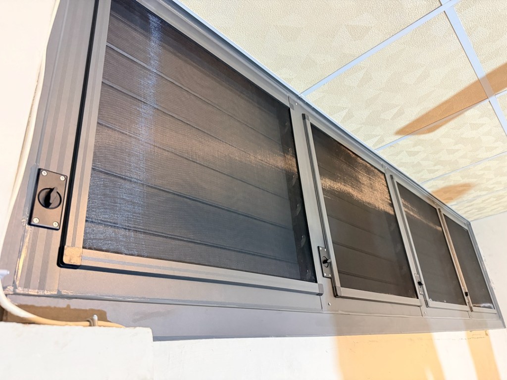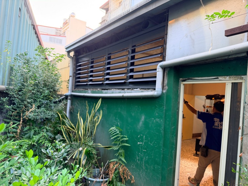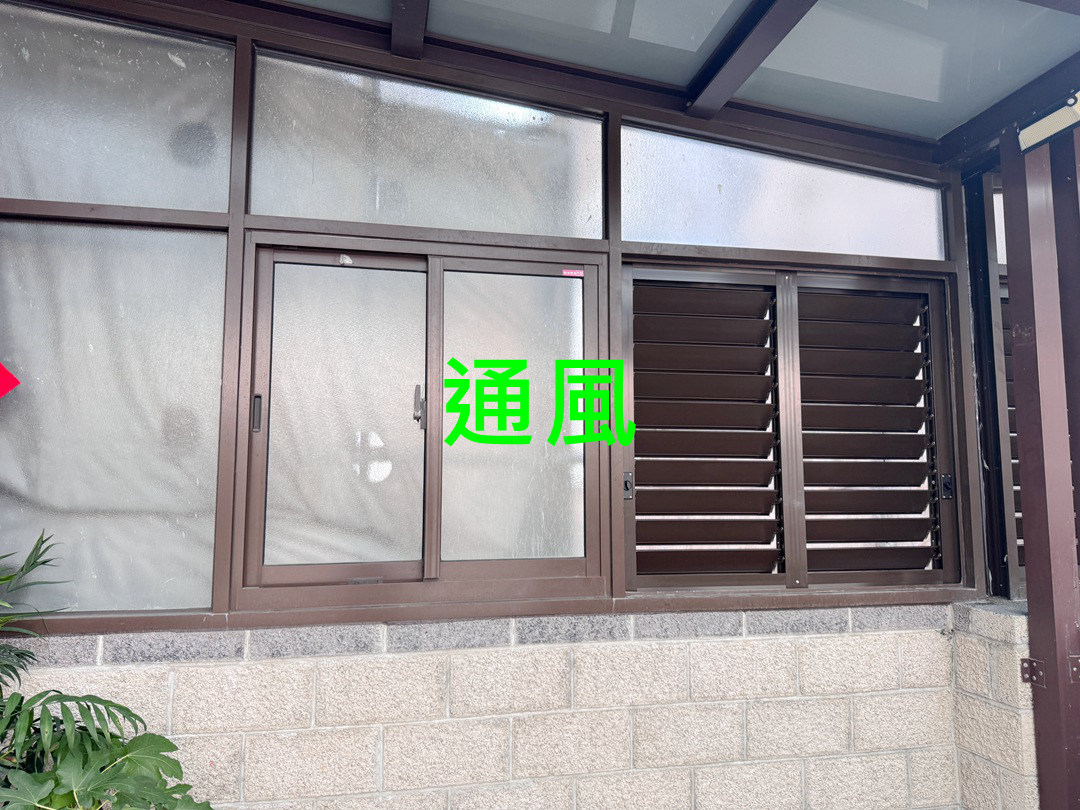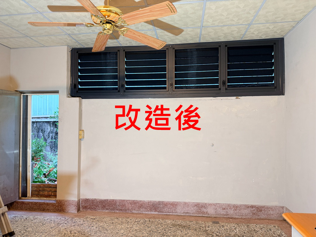 解決方案:建議將用白鐵板封住的窗改活動鋁合金百葉窗。鋁百葉窗可調整葉片角度通風遮陽,平日開啟通風不怕下雨,全關變身室內空間。